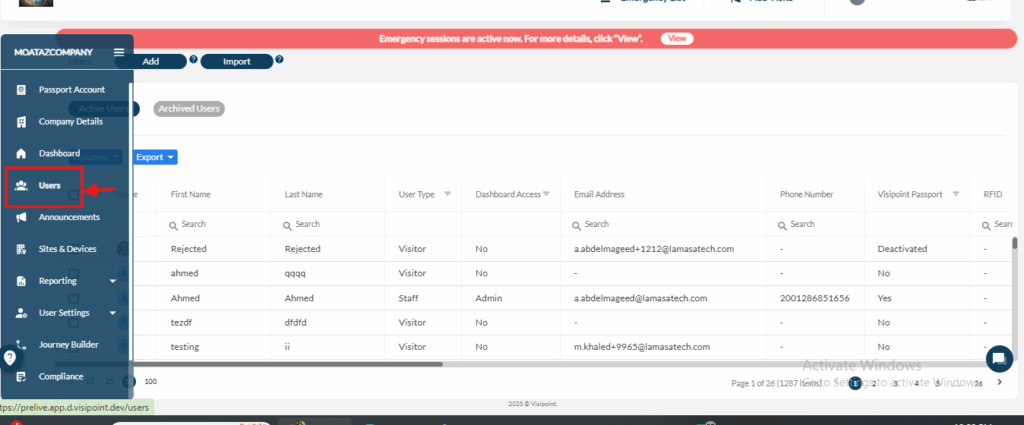 First, we go to the Users tab.