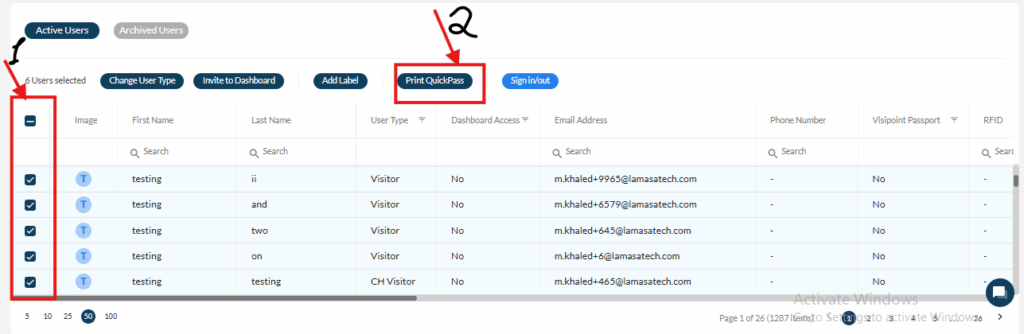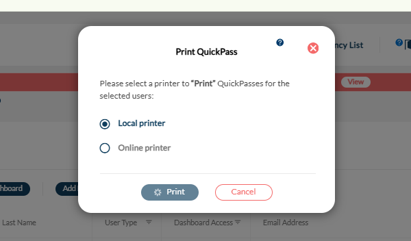 Start marking the users you want to issue the badges to then click on Print Quick Pass.