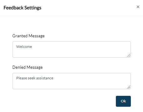 You can edit the granted message for successful scans and the denied message for those who have failed one or more entry criteria and will be denied entry on the kiosk.