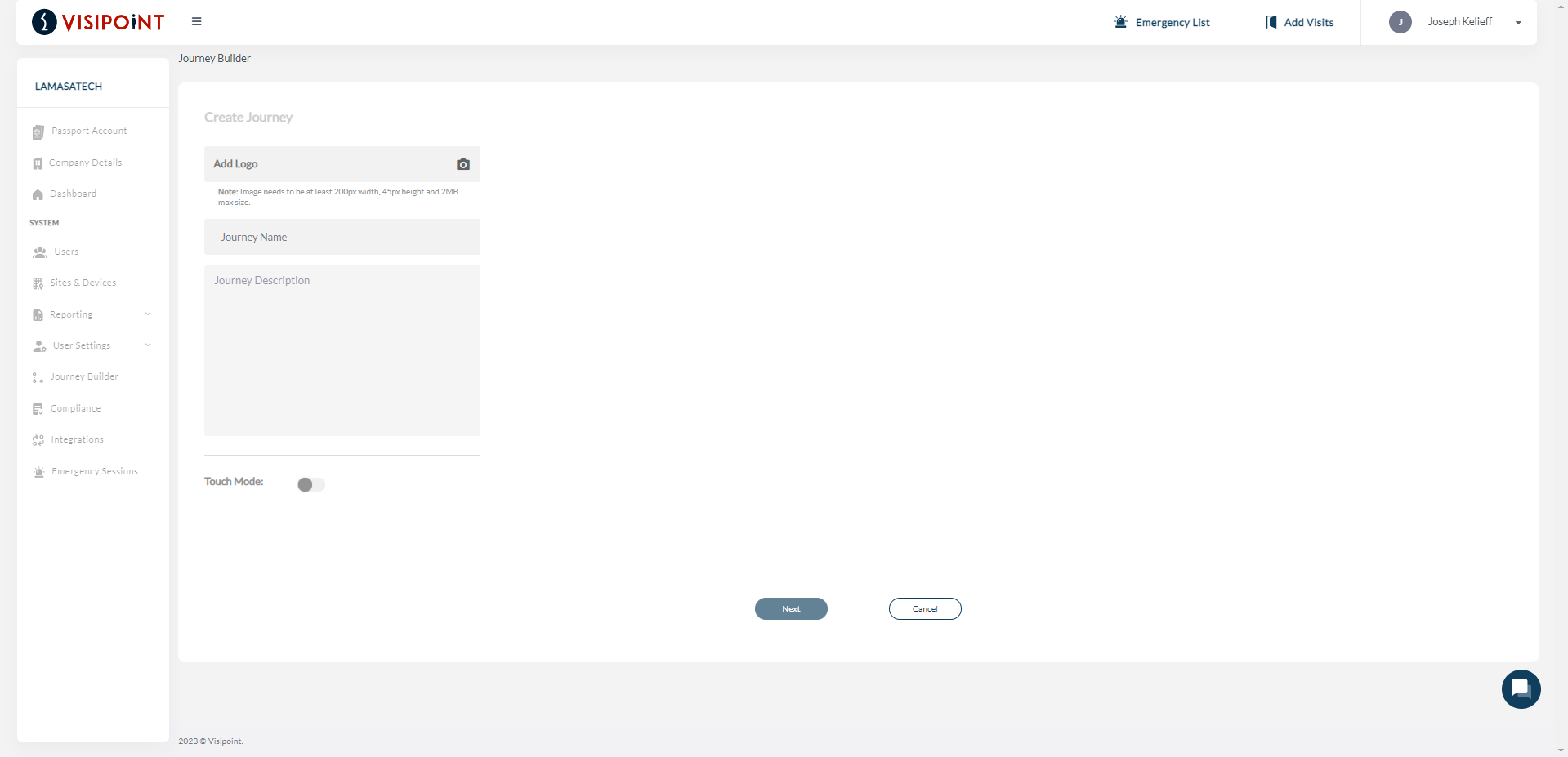 Click on Create Journey on the right side of the screen, This will take you to a screen where you will be asked to add the journey name and description.