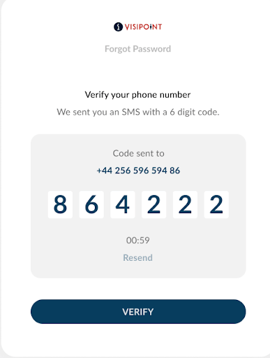 After you fill in your phone number and click send you’ll be presented with this page. You will then be sent an SMS with a code to input on the page. This code will only be valid for 60 seconds.
