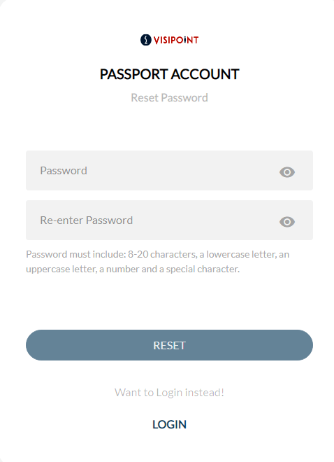 Once finished, you can click the reset button. You will then be taken to the login screen to fill in your username and new password to sign in to your passport account.