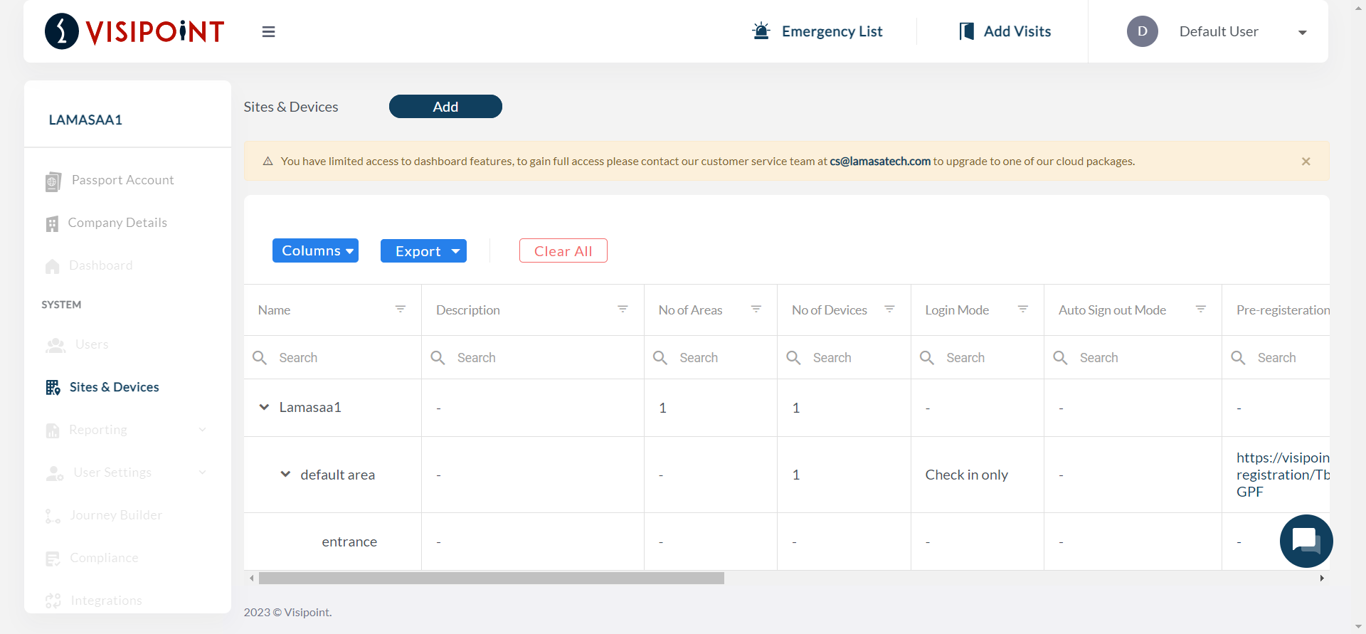 If you would like access to the rest of the remote management features – including bulk user import, online journey builder, and entry logs – you will need to upgrade to a cloud account by purchasing a cloud subscription.