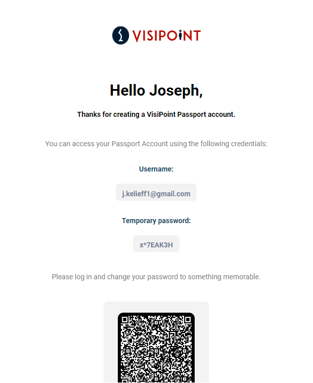 VisiPoint Passport Email